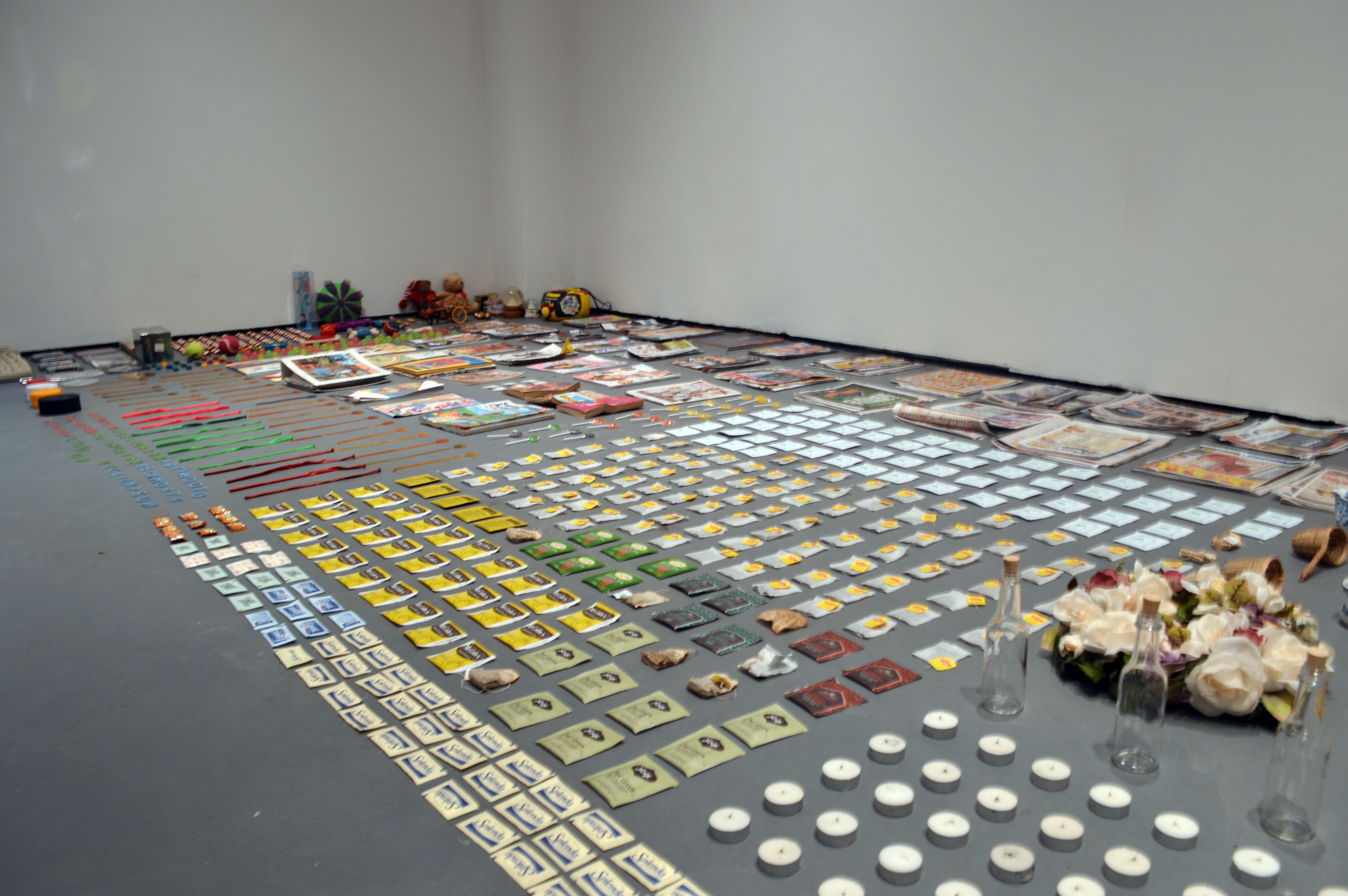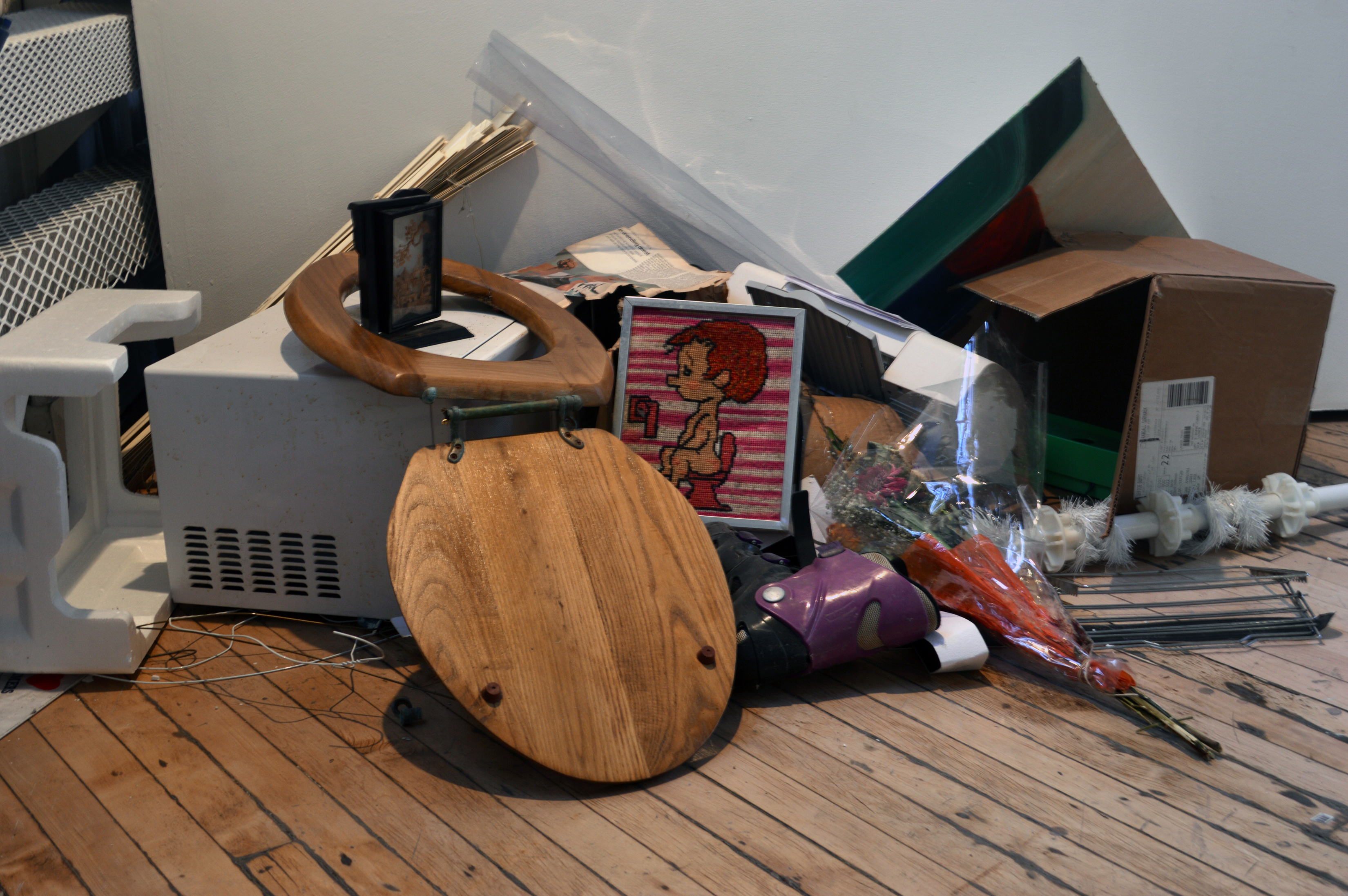 Two galleries in New York, NY became home to a collection of items both cast off and precious. The Commons Gallery hosted an undulating landscape of objects where she originally unloaded them, created with the dramatic intent to present them in their new surroundings with a new purpose. Standing in stark contrast, the Rosenberg Gallery housed its contents in neatly ordered rows of similar items. Reminiscent of a store or collection, this presentation gave new life to both the objects and the people viewing them, allowing for new and renewed connections between those involved in the process.